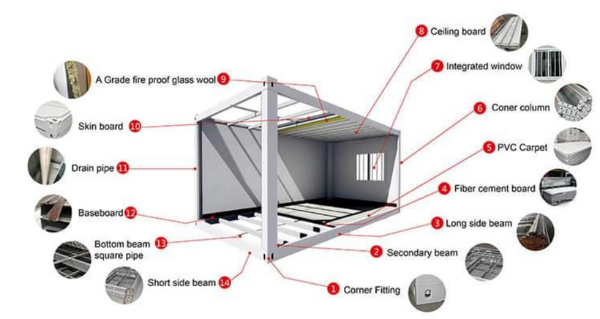Prefab cabin kami dibina menggunakan bahan tahan lasak seperti keluli tahan karat dan sandwich panel yang kalis cuaca dan tahan lama walaupun dalam keadaan panas, hujan lebat, atau kelembapan tinggi.