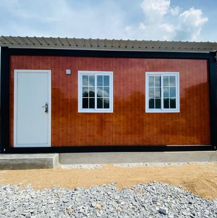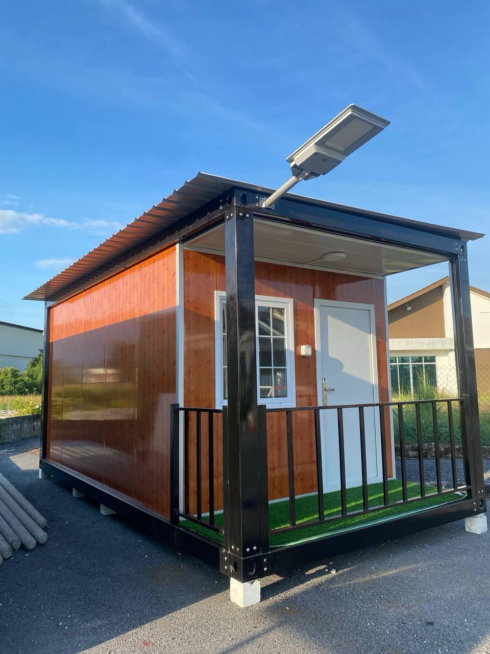 Prefab Cabin dengan hot dip galvanized steel, lantai MGO board, dan dinding EPS Sandwich Wall Panel tahan karat, anti anai-anai, tahan lama dan sesuai pelbagai persekitaran.