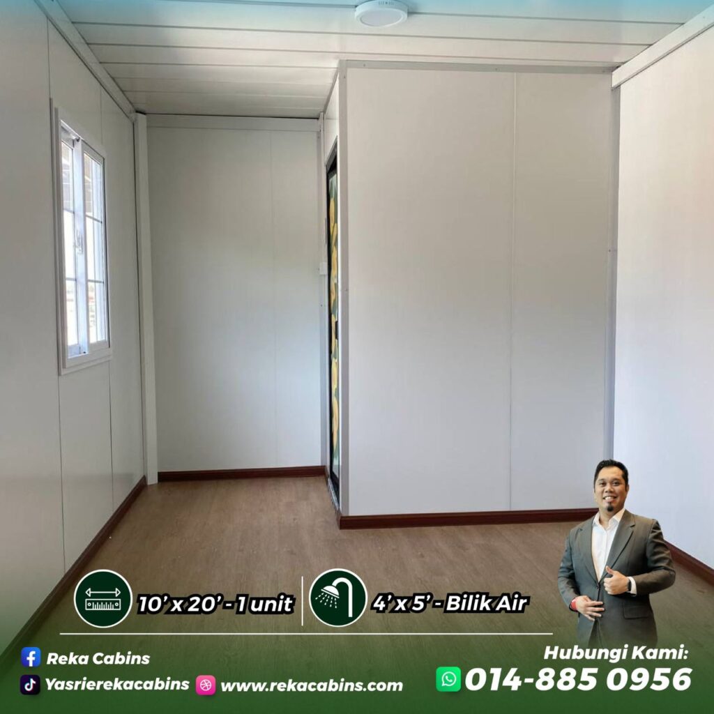 Prefab cabin memberi imej profesional dan praktikal, sesuai dijadikan pejabat, butik, kafe kecil atau ruang kerja kreatif.